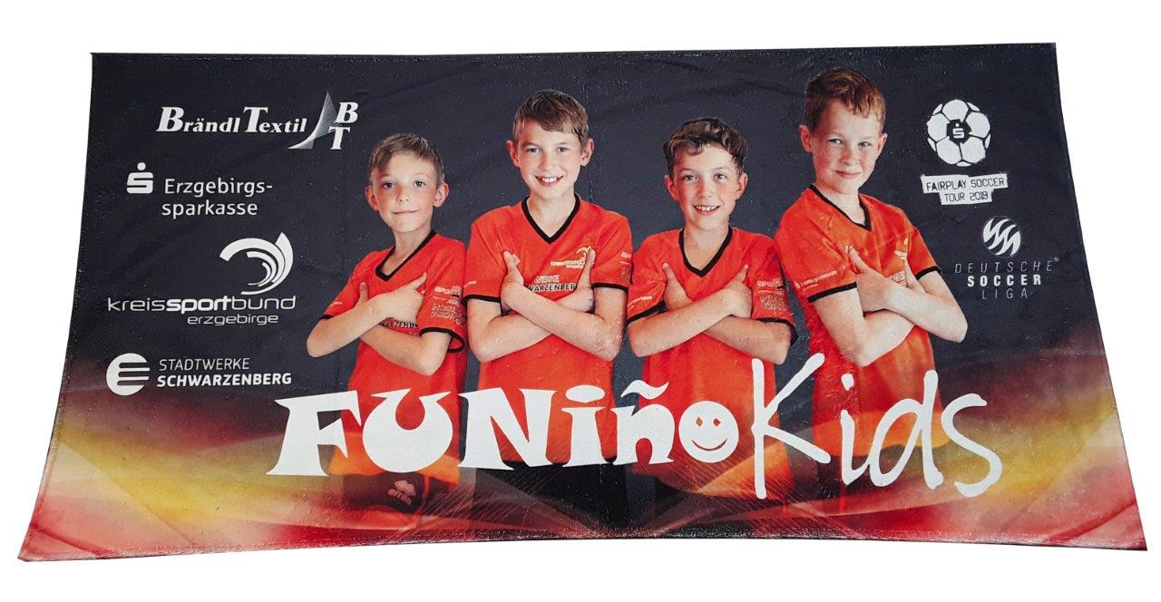 Velour-Frottierartikel - nach Ihren Wünschen bedruckt Art. 0390 Wir entwerfen nach Ihren Vorstellungen ein individuelles Design. Die abgebildeten Frottiertücher sind Referenzen, die wir bereits für unsere Kunden angefertigt haben. Lassen Sie sich gerne davon inspirieren und entwickeln Sie daraus Ihre Ideen, die wir zusammen mit Ihnen umsetzen. Kontaktieren Sie uns per Mail an geschenk-shop@braendl.de und teilen Sie uns Ihre Wünsche mit. Falls vorhanden benötigen wir Ihre Logos als Vektorgrafik, Bilder mit hoher Auflösung und Farbwünsche, gerne auch mit konkreten Farbwerten. Diesen Artikel können wir in vielen Größen anfertigen - vom Waschhandschuh über Hand- und Duschtücher bis hin zum riesigen Strand-Badelaken. Es gibt keine Mindestabnahmemenge. Perfekt als Geschenk für Kunden und Vereinsmitglieder sowie als Merchandise-Artikel für Sportvereine. Die bedruckte Vorderseite besteht aus 100% Microfaser-Polyester - weich und kuschelig, die unbedruckte Rückseite aus 100% Baumwolle Walkfrottier - saugfähig und hautsympathisch.