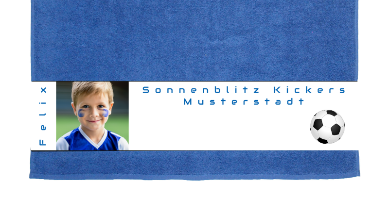 Entwerfen Sie Handtücher zum Beispiel für die Mitglieder Ihres Vereins oder die Mitarbeiter Ihrer Firma - auf Wunsch für jeden mit dem eigenen Namen. Gerne können Sie das Design vorab mit Ihrem Grafikprogramm gestalten und dann fertig in unseren Produktdesigner hochladen. Achten Sie dabei auf gute Bildqualität und füllen Sie den Zeichenbereich vollständig aus!
