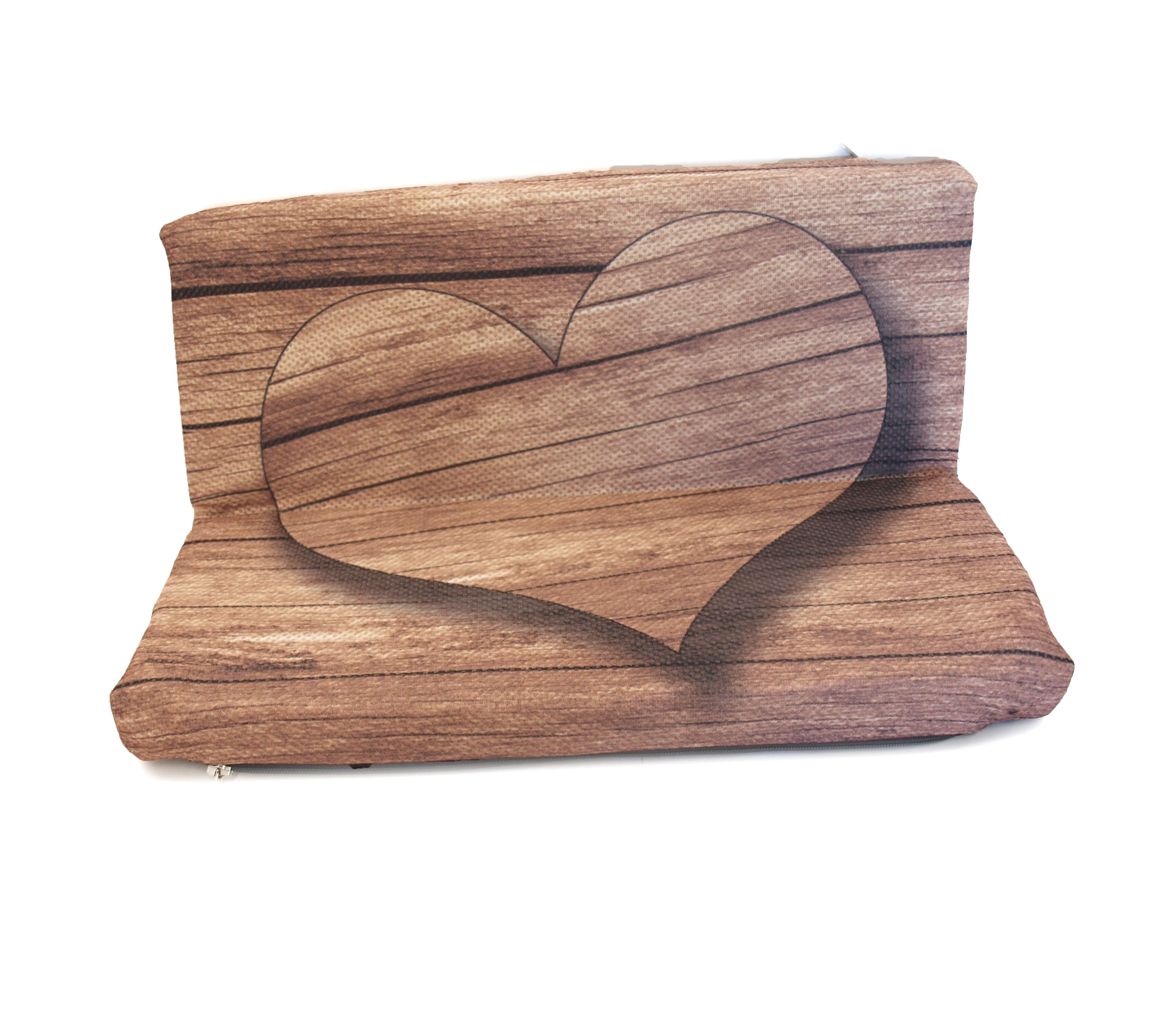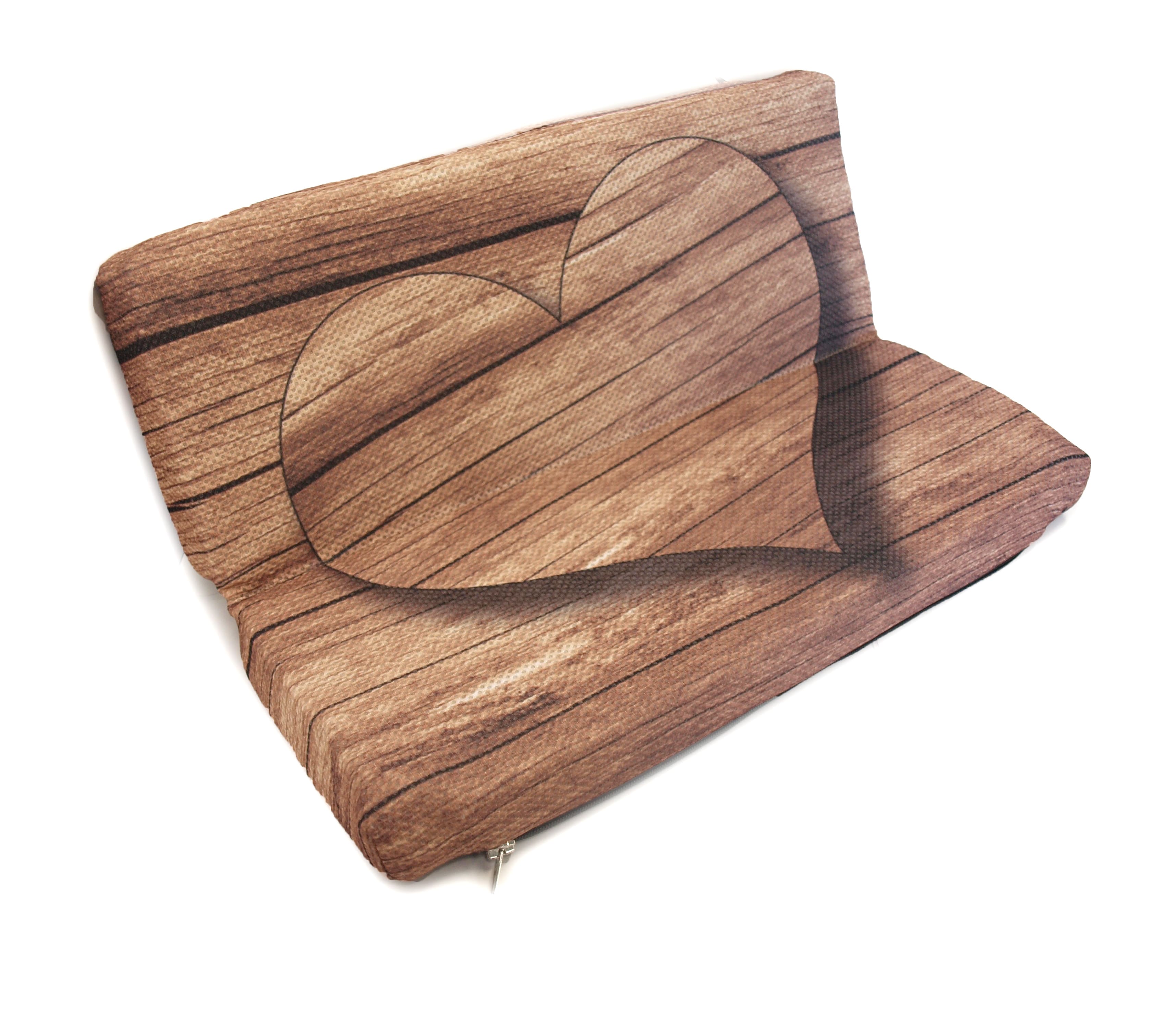 Sitzenbleiber-Klappkissen für Holzwürmer: das fotorealistische Holzmotiv wirkt täuschend echt! Das Herz scheint auf dem Holzuntergrund zu schweben Dieses Klappkissen für unterwegs ist ein perfektes Geschenk für alle, die Holz lieben und denen Sie Ihr Herz schenken wollen!