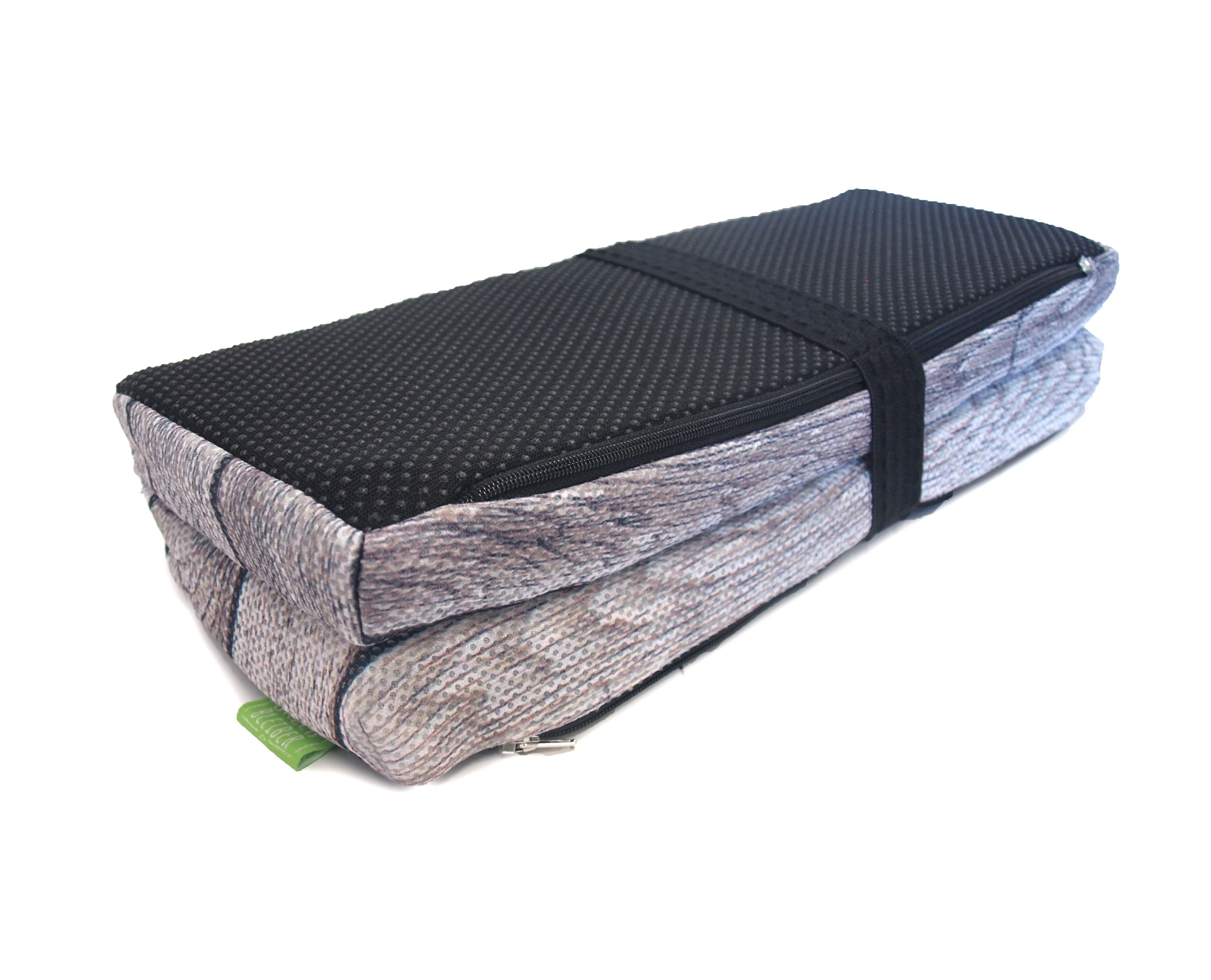 Sitzenbleiber-Klappkissen für Holzwürmer: das fotorealistische Holzmotiv wirkt täuschend echt! Dieses Klappkissen für unterwegs ist ein perfektes Geschenk für alle, die Holz lieben!