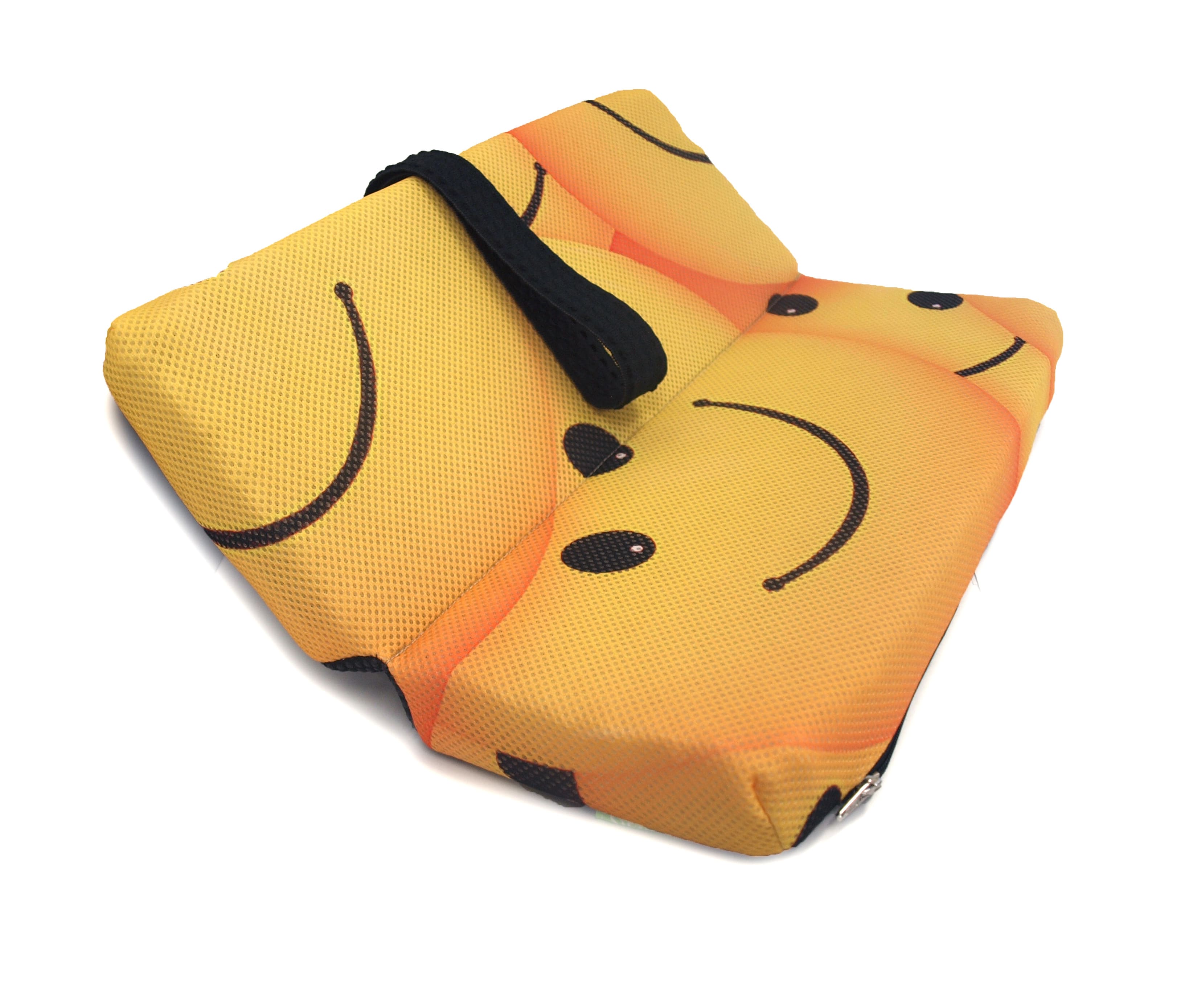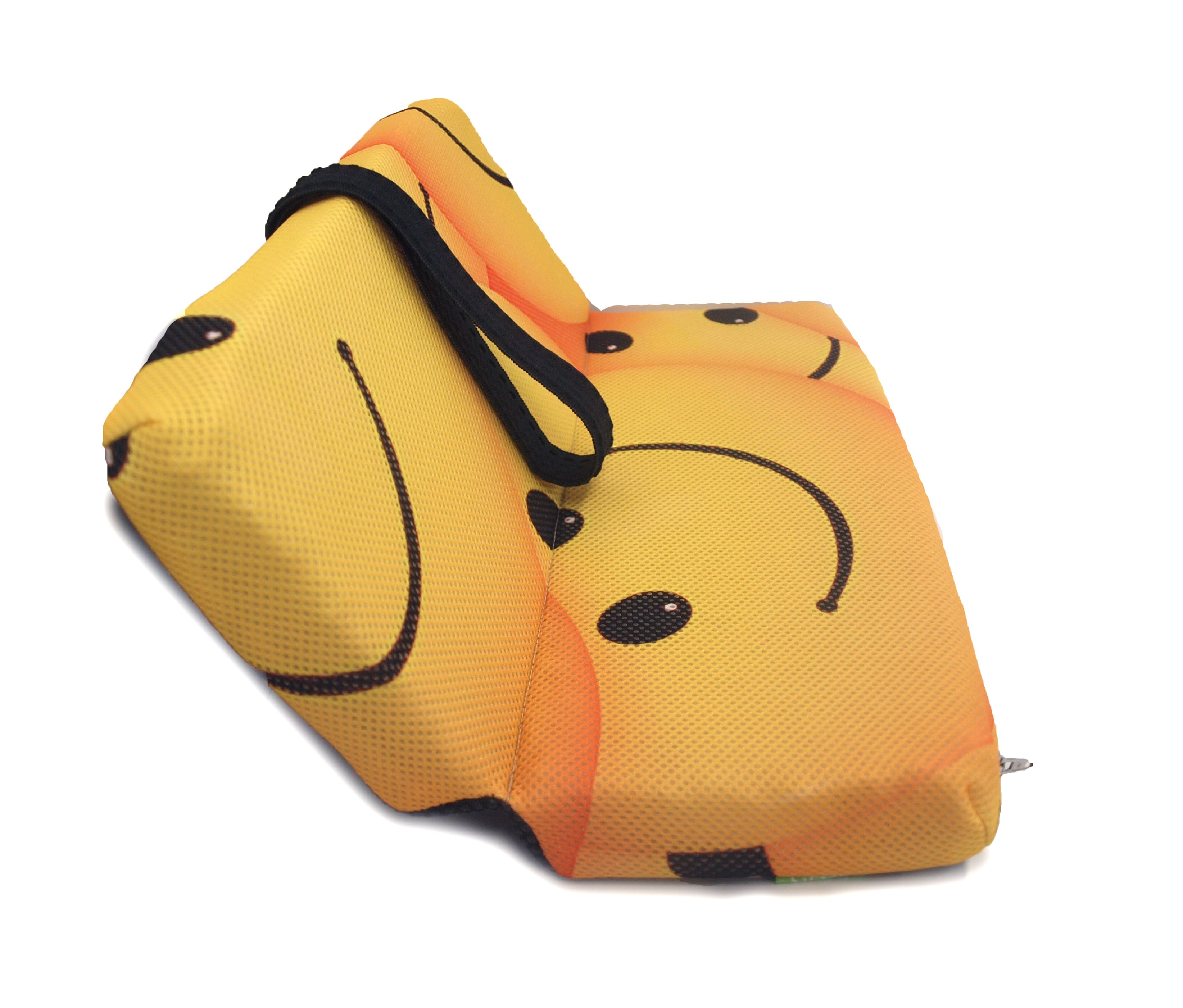 Natürlich haben wir Sitzenbleiber-Klappkissen auch mit Kindermotiven, zum Beispiel dieses hier mit Smiley-Motiv in strahlendem Gelb!